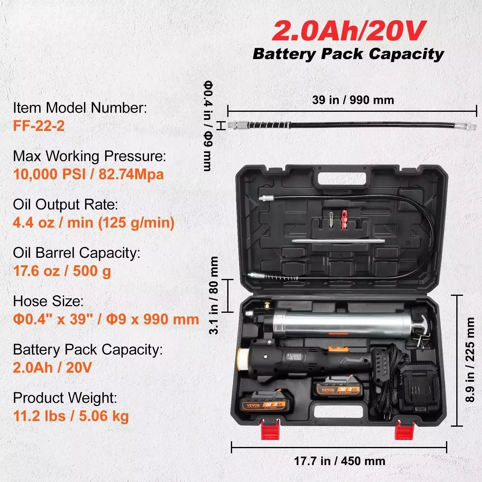With thoughtful design and user-friendly features, this electric grease gun simplifies even the toughest lubrication jobs. The grease-locking button ensures smooth operation without needing to keep your finger on the trigger, and the integrated LED light keeps your workspace visible even in low light. The 39-inch flexible hose lets you access hard-to-reach areas effortlessly, ensuring every lubrication point is covered.