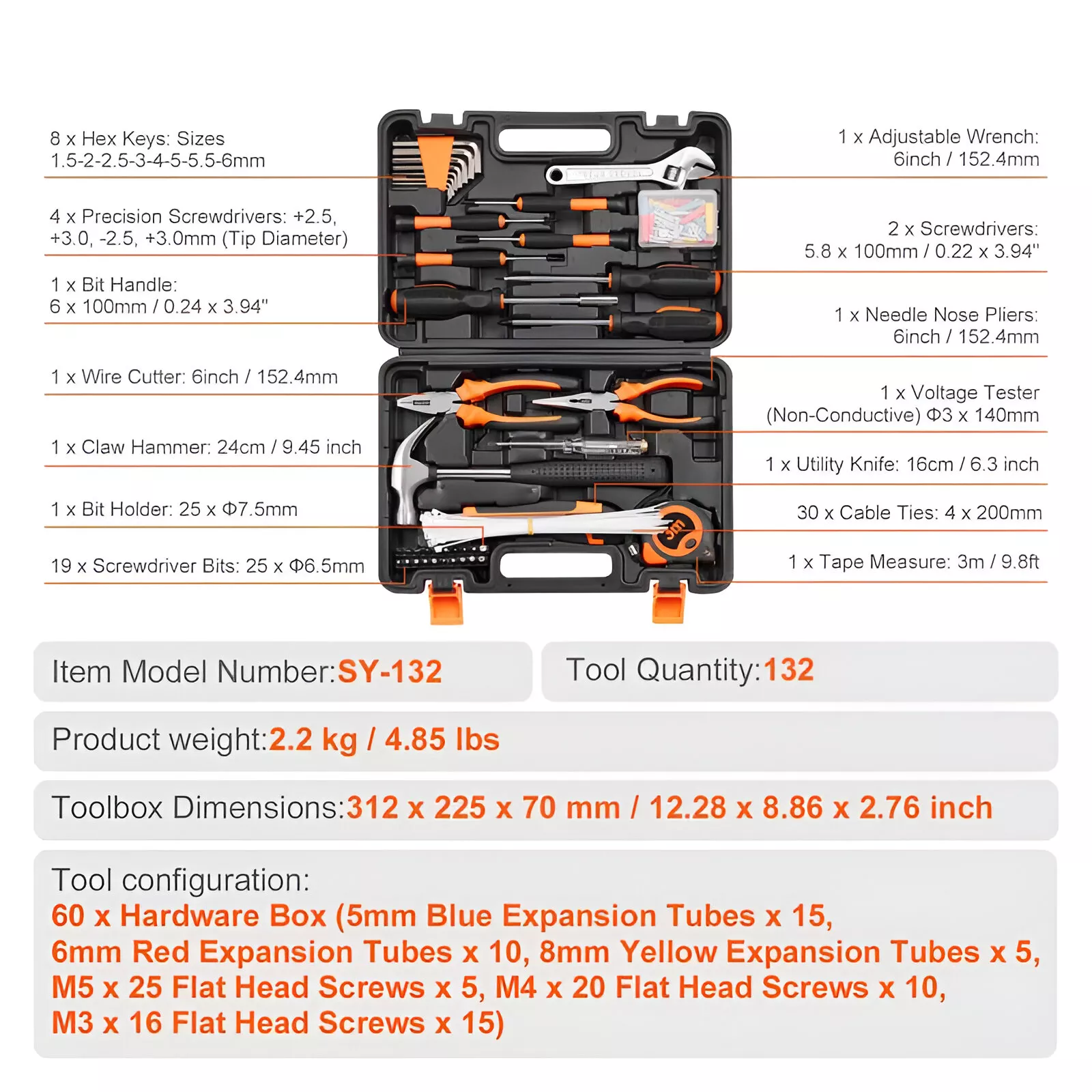 Designed with ergonomics in mind, each tool in this set features a comfortable, easy-grip handle that reduces fatigue, even during long repair sessions. The portable case keeps all 132 tools neatly organized, so you can quickly find what you need. Perfect for both beginner DIYers and seasoned handymen, this kit ensures you’re prepared for any situation.
