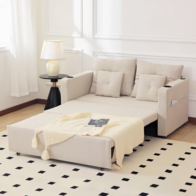 Maximize your living space with this 55″ 3-in-1 Convertible Sleeper Sofa Bed, designed to blend style, functionality, and convenience. This space-saving loveseat seamlessly transitions from a cozy couch to a recliner and a full-sized bed, making it the perfect solution for small apartments, guest rooms, or any space-conscious home. With its elegant beige linen fabric and modern design, this sofa bed effortlessly complements any décor.