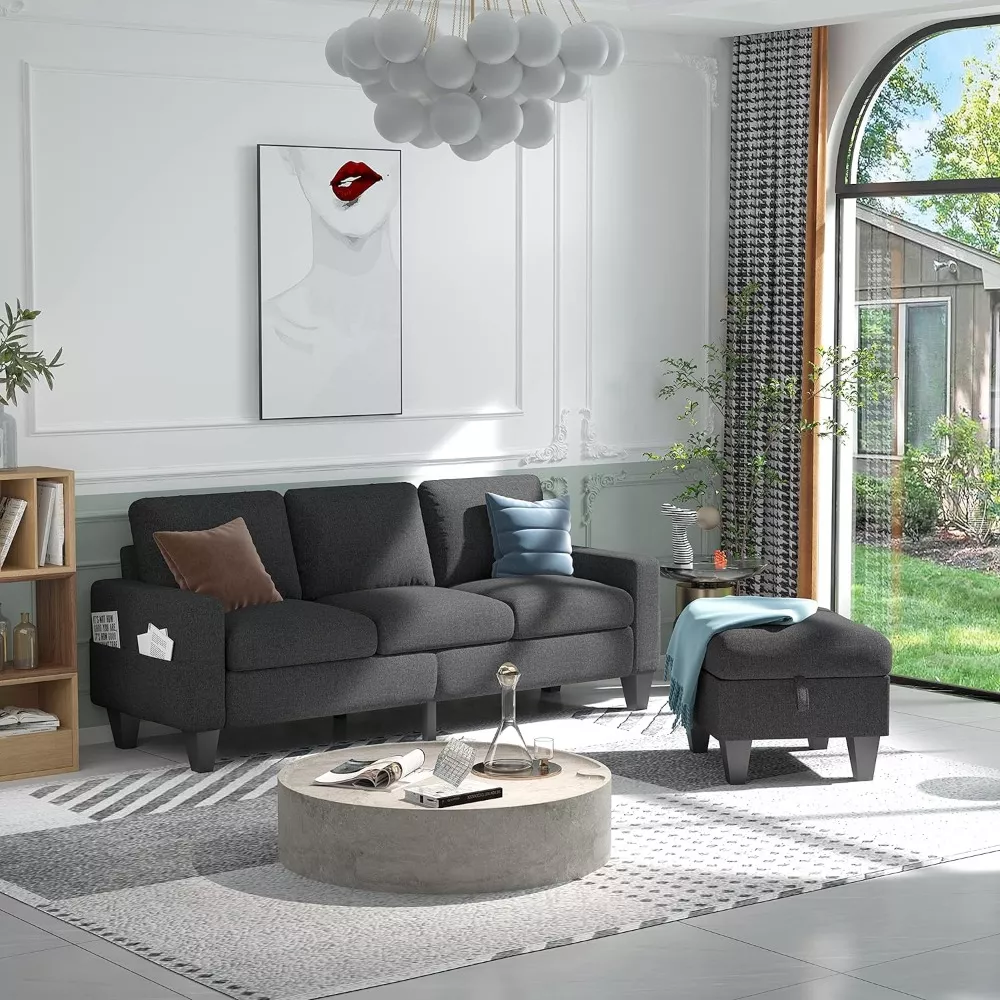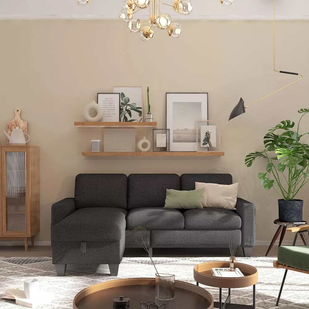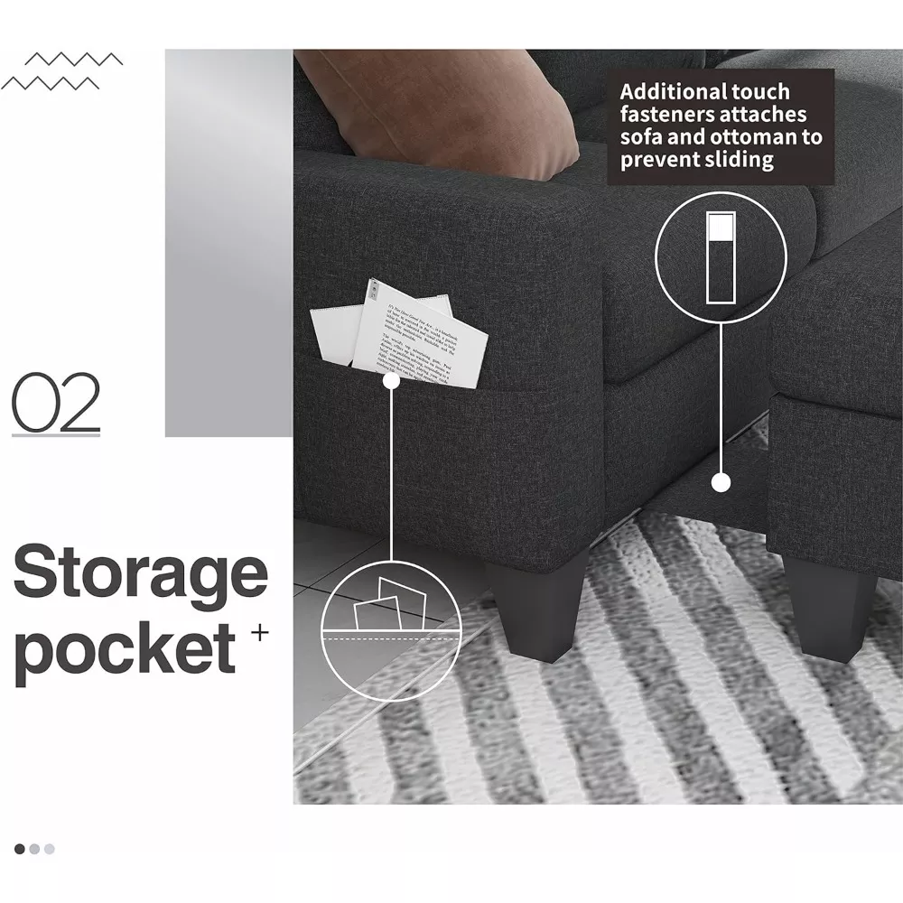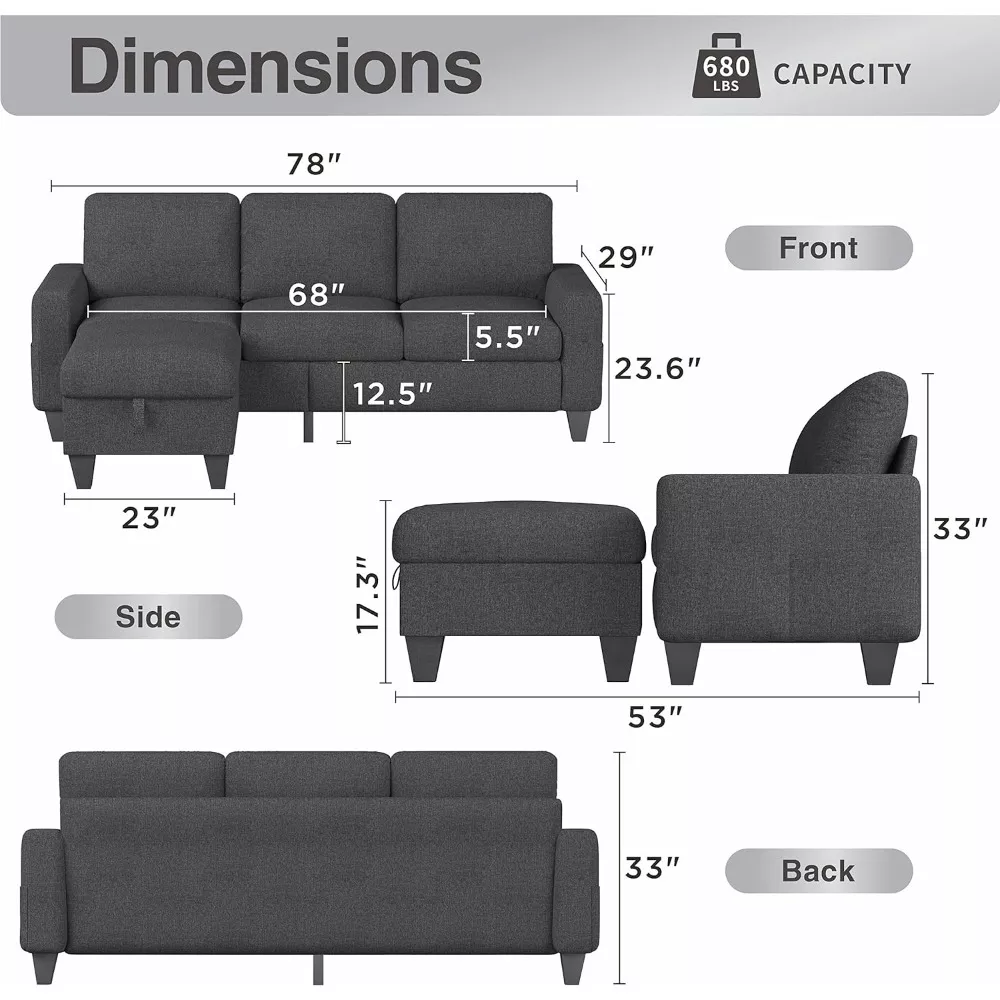 Upgrade your living room or apartment with this stylish 78-inch L-shaped modular couch, designed to maximize comfort and functionality in smaller spaces. With its versatile configuration, sturdy construction, and added storage, this 3-seater sofa is the perfect solution for compact homes, providing both style and practicality. The sleek dark gray design complements any modern décor, making it an excellent choice for living rooms, dorms, or home offices.