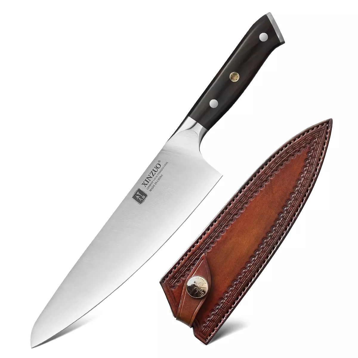Perfect for both home cooks and professional chefs, this German steel chef knife combines style, functionality, and comfort. The high-carbon stainless steel blade maintains sharpness even with frequent use, making it an essential tool for everything from daily meal prep to complex culinary creations. The natural ebony wood handle not only adds an elegant aesthetic but also ensures a comfortable grip that enhances control, even during intensive chopping tasks.