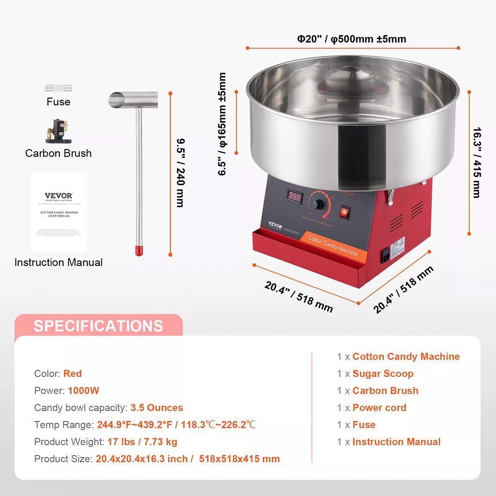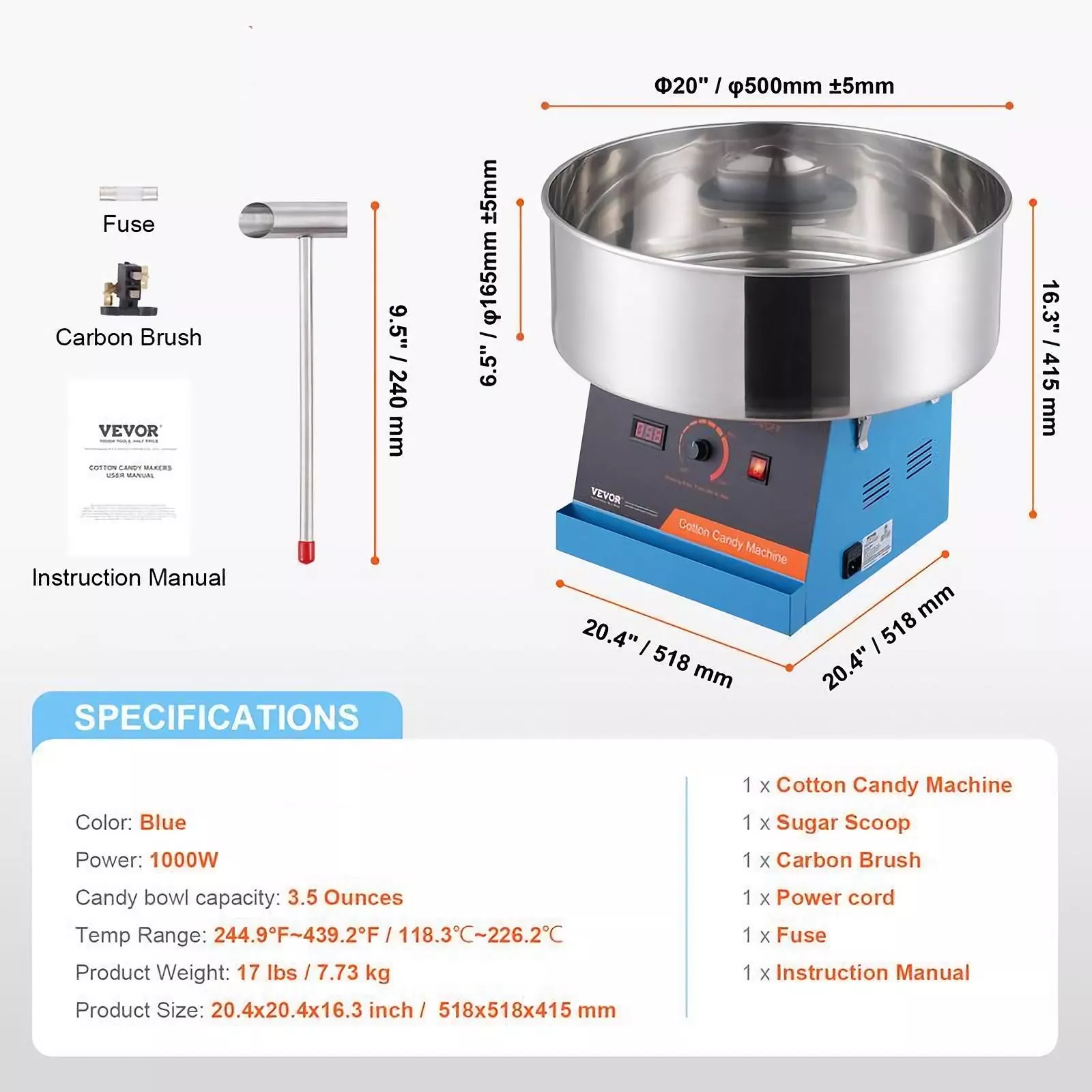 Transform any occasion into a sweet celebration with our Commercial Cotton Candy Machine. This electric candy floss maker is designed to deliver a delightful experience, whether you’re hosting a festival, birthday party, carnival, or simply enjoying a family gathering. With its powerful 1000W motor and user-friendly features, you’ll be whipping up fluffy, colorful cotton candy in no time!