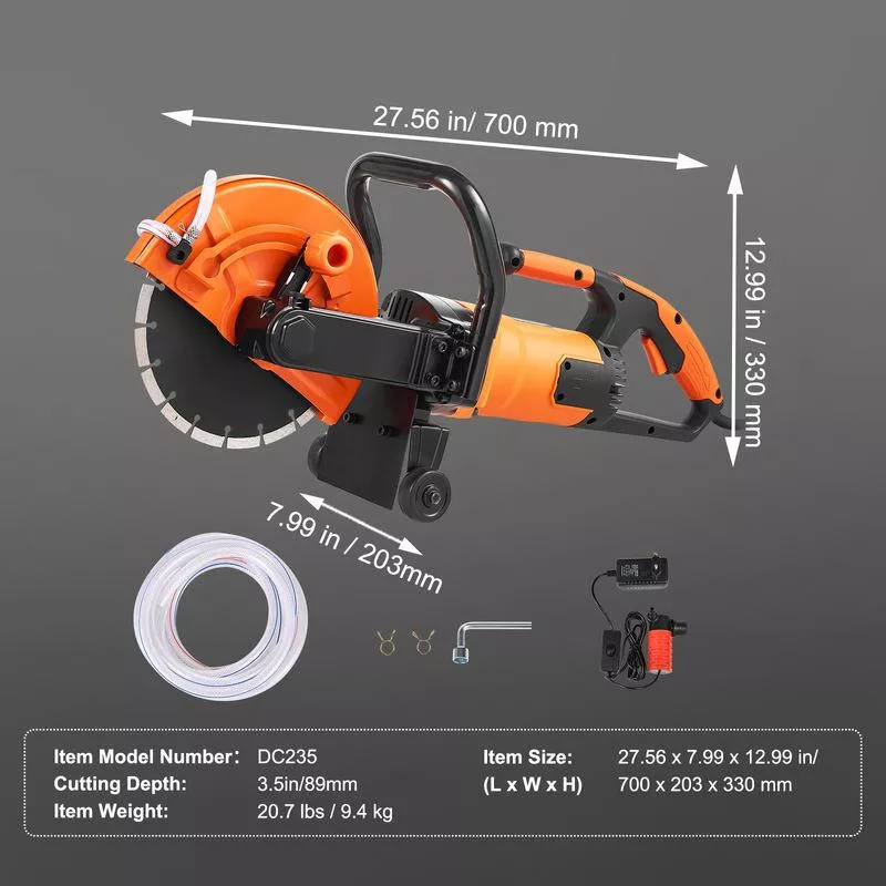 • 9-Inch Blade with 3.5-Inch Cutting Depth: Designed for effective cutting through concrete, stone, and brick.