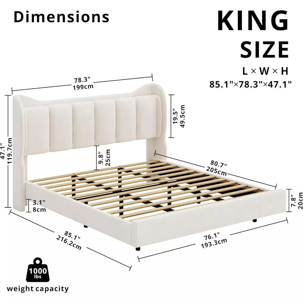 Introducing the King Size Floating Bed Frame with LED Lights and a whimsical cat ear-shaped headboard. This unique bed frame combines modern design with playful charm, making it the perfect centerpiece for any bedroom. The cream-colored upholstery and floating design add a touch of sophistication, while the adorable headboard brings a sense of warmth and personality. Whether you’re relaxing after a long day or showcasing your stylish space, this bed frame is sure to impress.