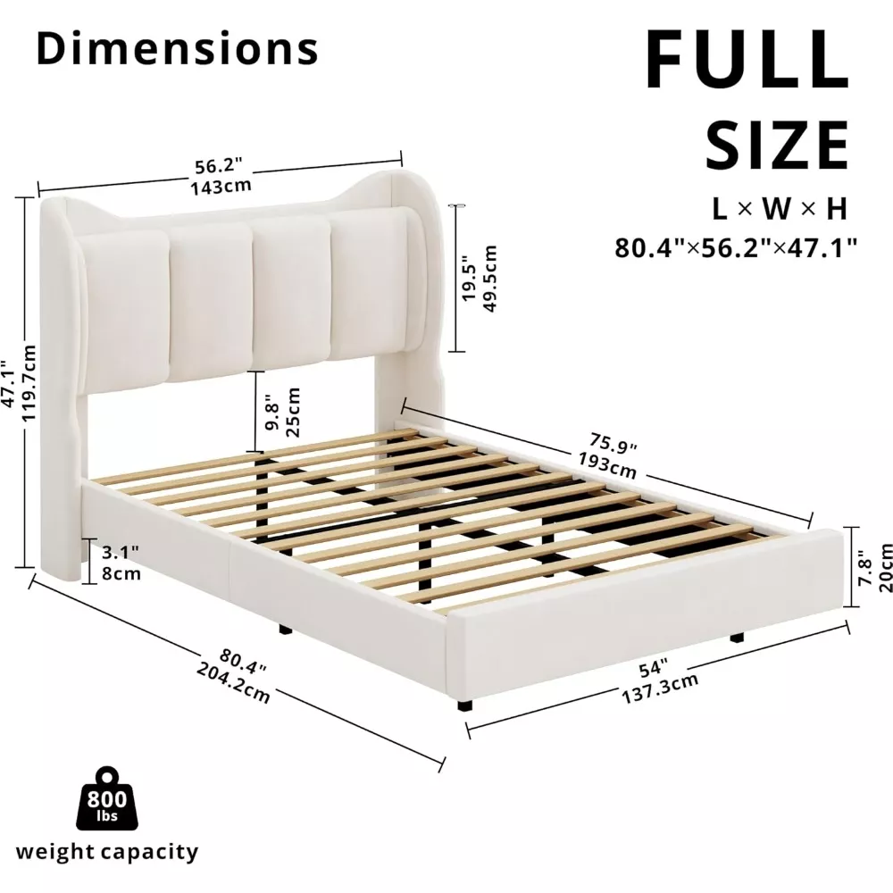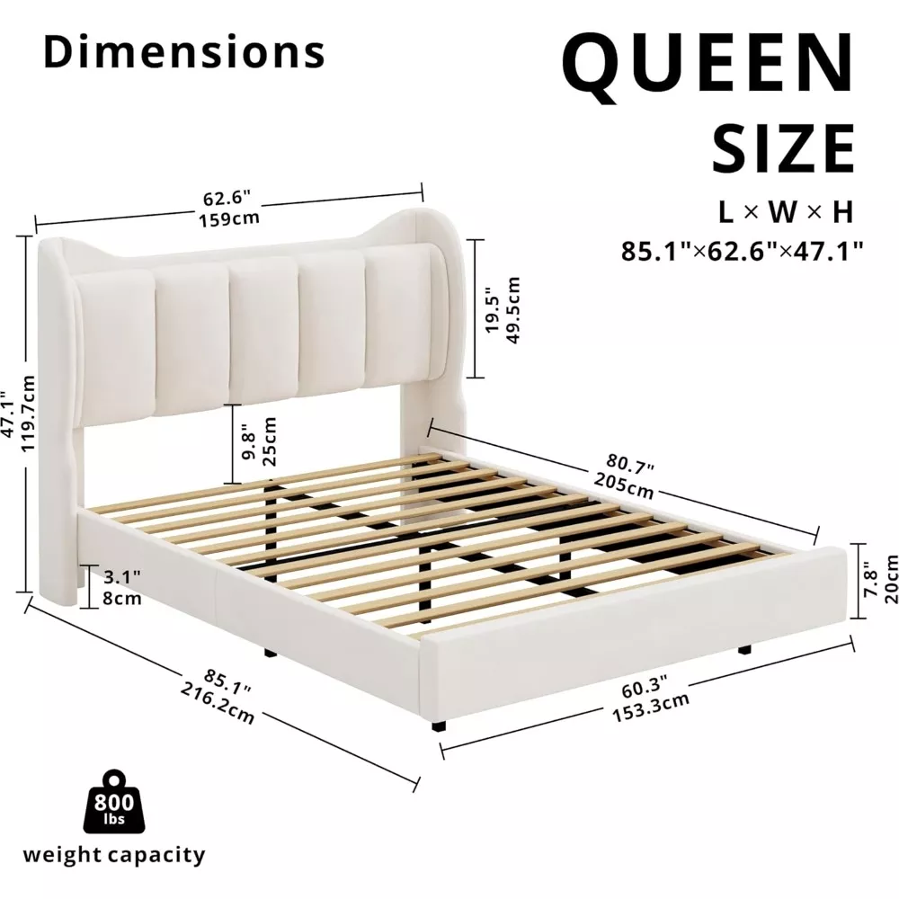Floating Bed Frame with LED Lights and Cat Ear Headboard