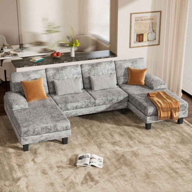 Transform your living space with this stunning U-shaped sectional sofa, designed to blend sophistication with unparalleled comfort. Crafted with luxurious chenille fabric and a sturdy solid wood frame, this sofa is a perfect combination of style and durability. Its elegant dark gray color complements a variety of décor styles, from modern minimalist to cozy traditional.