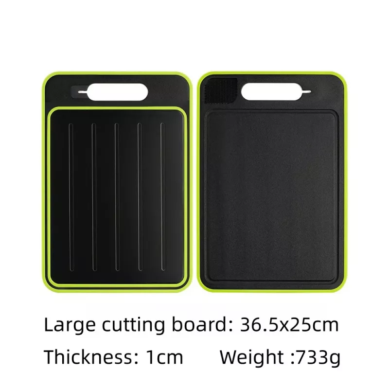 • Dual-Sided Functionality: One side for cutting and grinding, the other side for quick thawing—saving time and space in your kitchen.