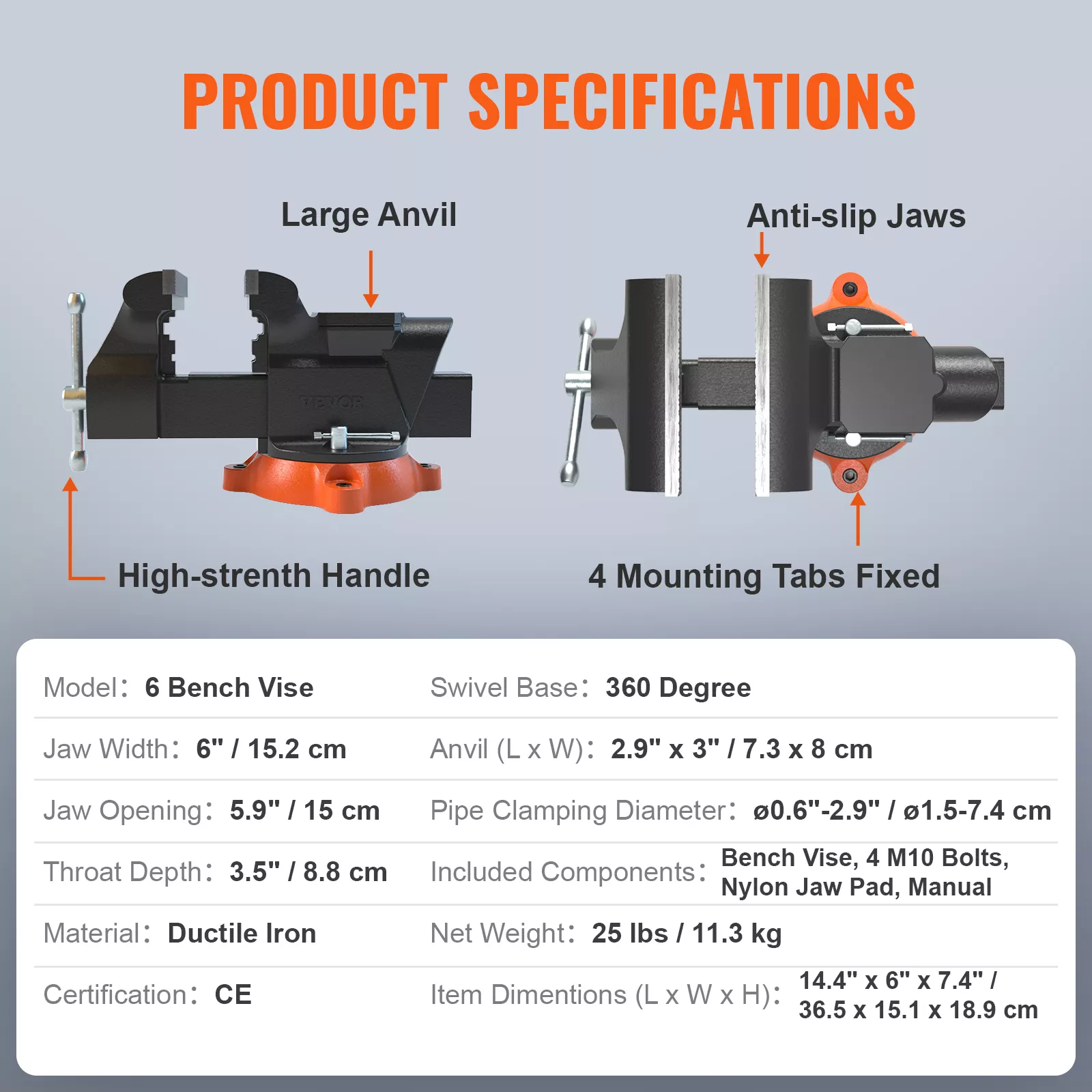 Multipurpose Bench Vise with Swivel Base & Anvil