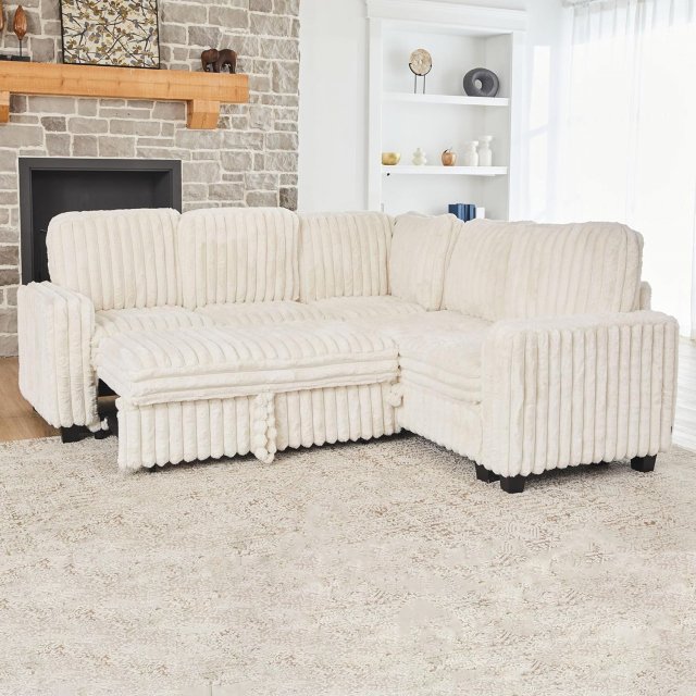 This sectional sofa is crafted with plush corduroy fabric that feels soft to the touch and adds a warm, inviting vibe to your space. The pull-out bed feature lets you switch from a stylish sectional to a spacious sleeper in seconds, while the hidden storage compartments keep your living area organized. Its free combination modular design means you can customize the layout to fit your room perfectly, whether you prefer an L-shape, U-shape, or a simple sofa and chaise setup.