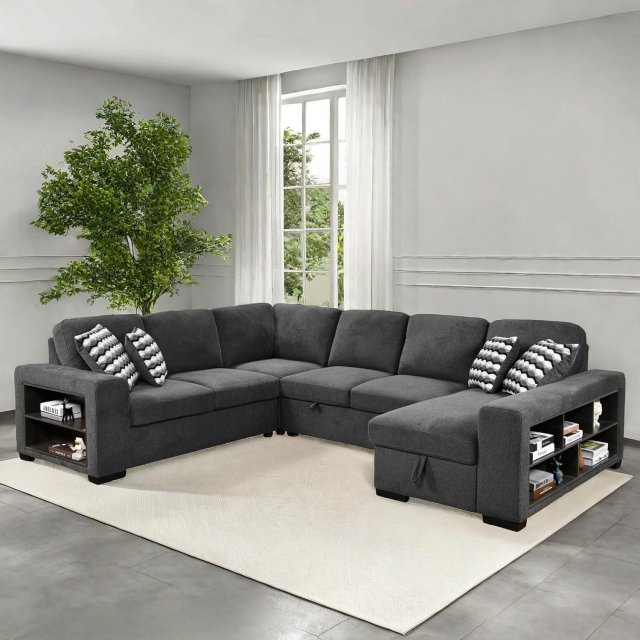 Discover the ultimate in versatility and luxury with our Sleeper Sectional Sofa. This U-shaped couch is designed to elevate your living space with its modern aesthetics and multi-functional features. Whether you’re hosting overnight guests, relaxing after a long day, or organizing your living area, this sectional has you covered. Its thoughtfully crafted design and smart storage solutions make it a must-have centerpiece for your home.