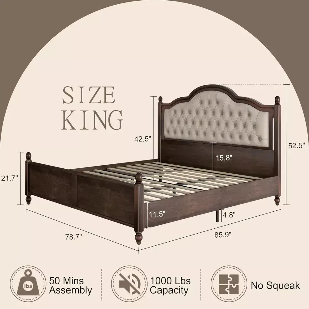 The 52.5-inch upholstered headboard is a true centerpiece, adorned with soft padding and tufted detailing. This luxurious design element not only offers plush comfort for relaxing against but also elevates your bedroom with a refined aesthetic. The meticulously crafted folds and texture bring an extra layer of visual appeal, making it a statement piece you’ll love.