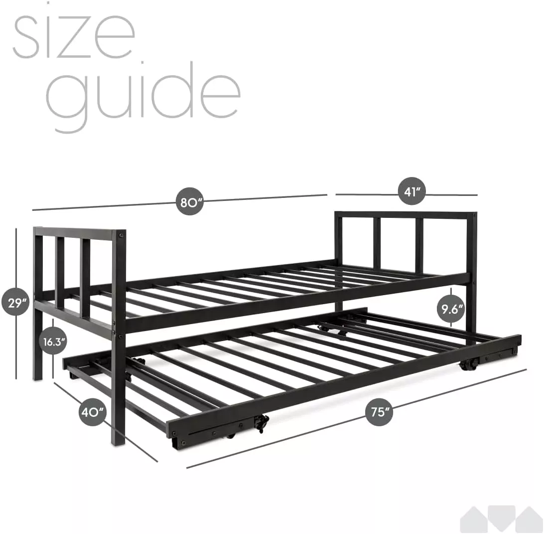 Maximize your living space without compromising on style or comfort. The sleek and versatile Twin Daybed with Pop-Up Trundle is the perfect solution for homes where space is at a premium. Whether you’re furnishing a cozy guest bedroom or upgrading your child’s room, this daybed and trundle set offers the ultimate in functionality and modern design. Its sophisticated black metal frame blends seamlessly with any decor, making it a timeless addition to your home.