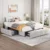 This King Upholstered Platform Bed is not just about looks; it’s designed to make your life easier. With its four under-bed storage drawers, it provides the perfect solution for those who need extra space for their belongings without compromising on style. The spacious drawers are ideal for keeping extra blankets, pillows, or seasonal clothing neatly tucked away and out of sight, ensuring a tidy and organized bedroom.